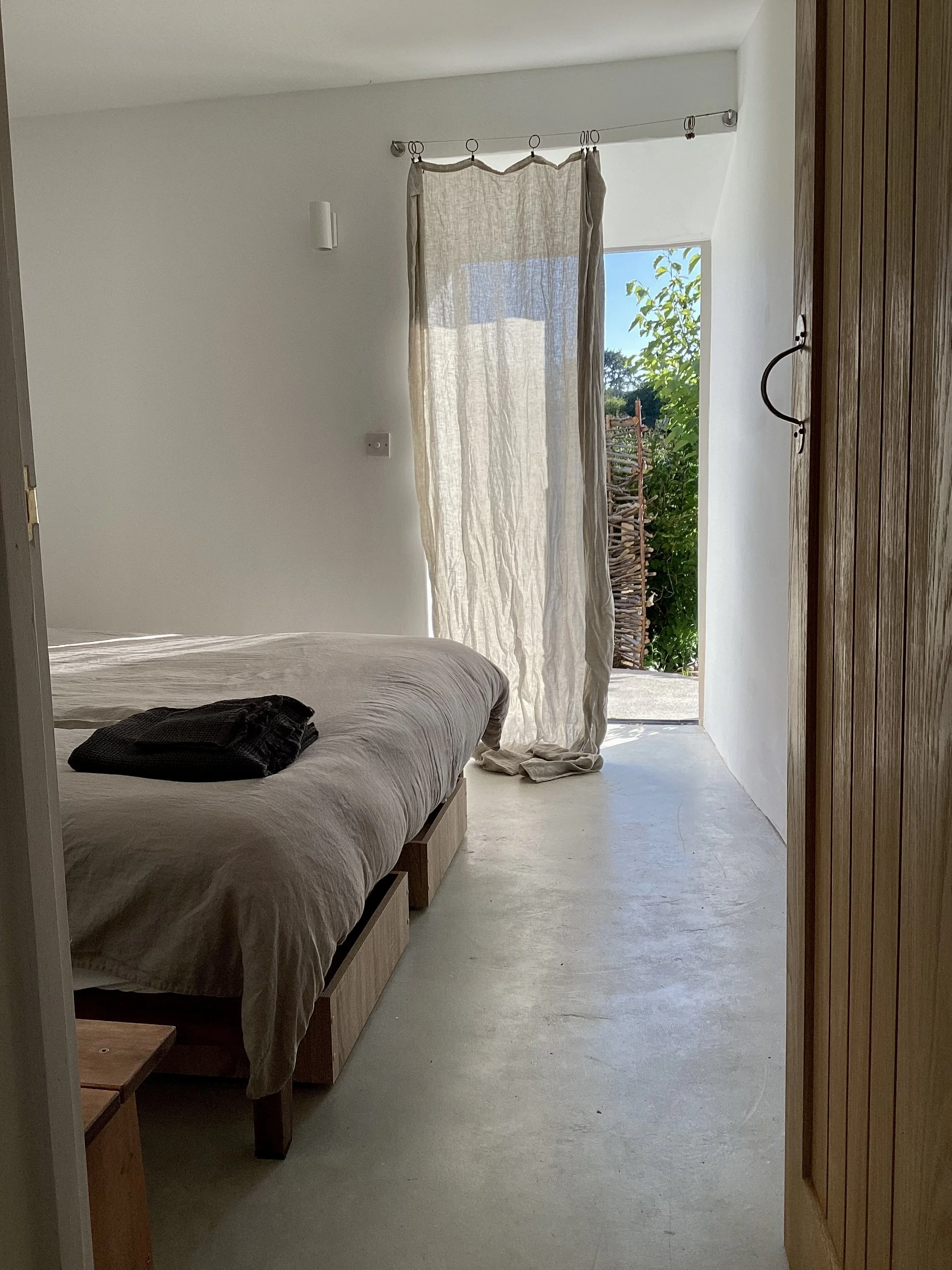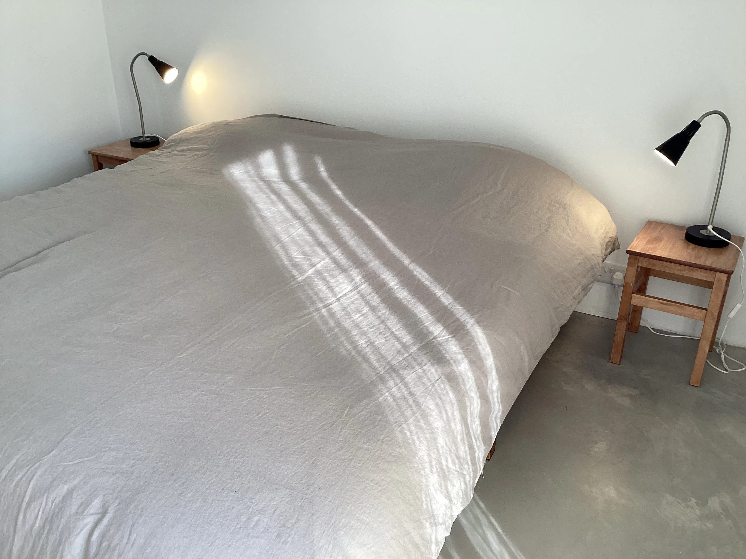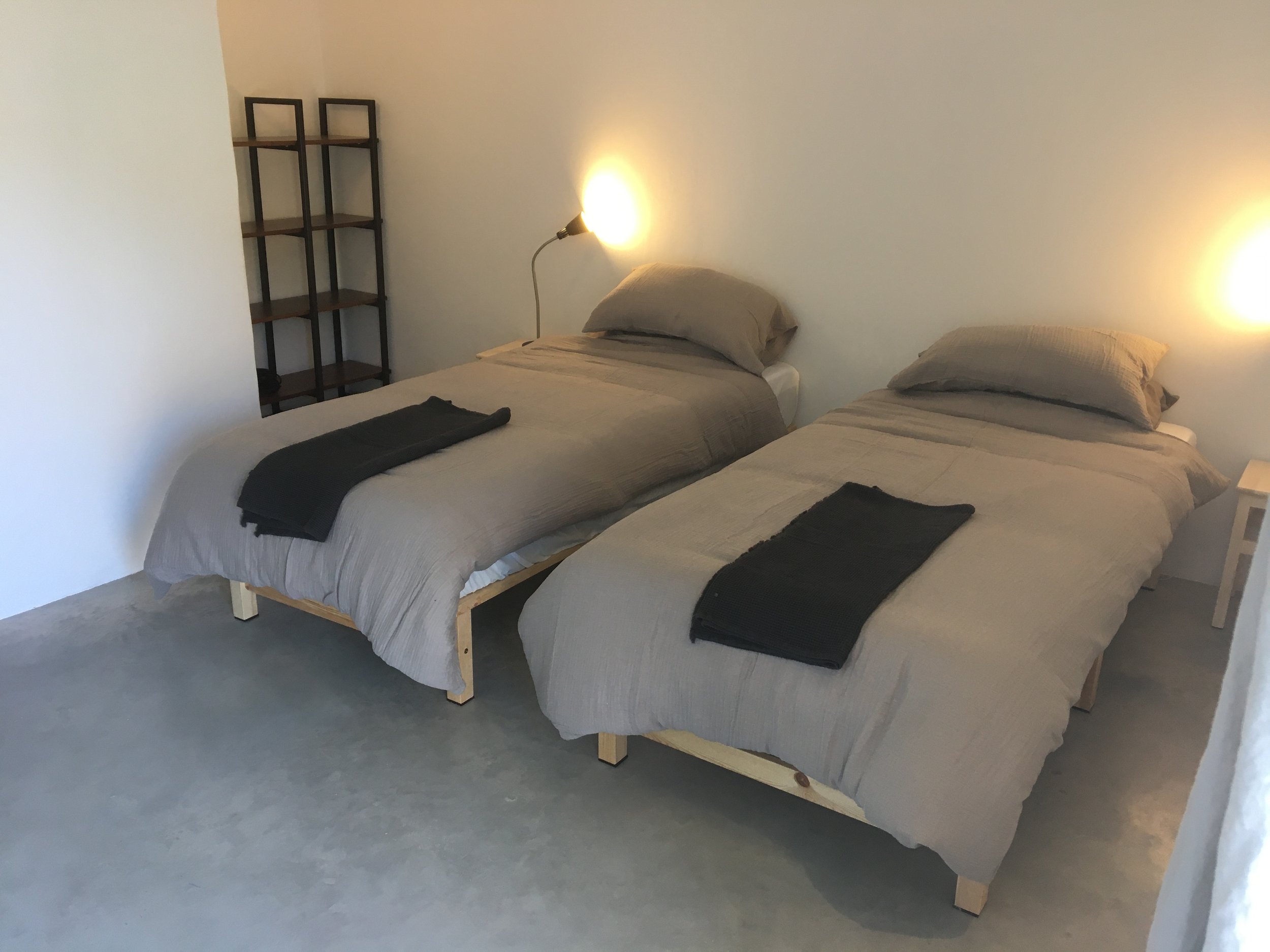 theundergroundstream offers en-suite accommodation of three double rooms - two super-kings, and one twin for up to 6 guests. Rooms have a minimal aesthetic - buffed concrete floors, white walls, pure cotton and linen.